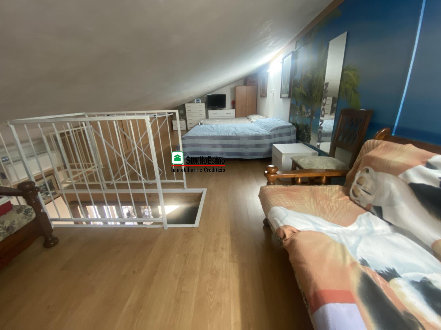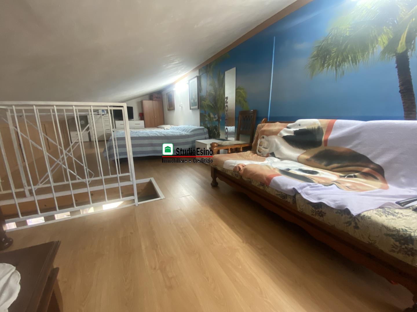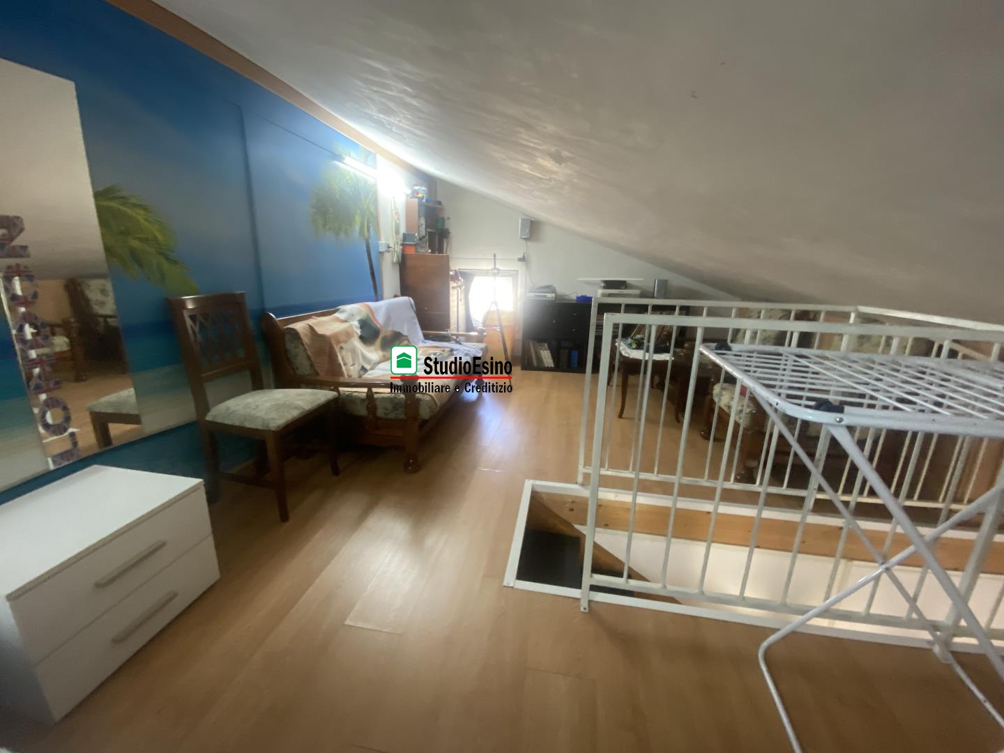 L'appartamento si presenta in ottime condizioni così composto: ingresso su soggiorno/cucina, camera matrimoniale, bagno con box doccia e finestra, due balconi, la soffitta è accessibile tramite scala in legno interna con pavimento in piano e finestra.