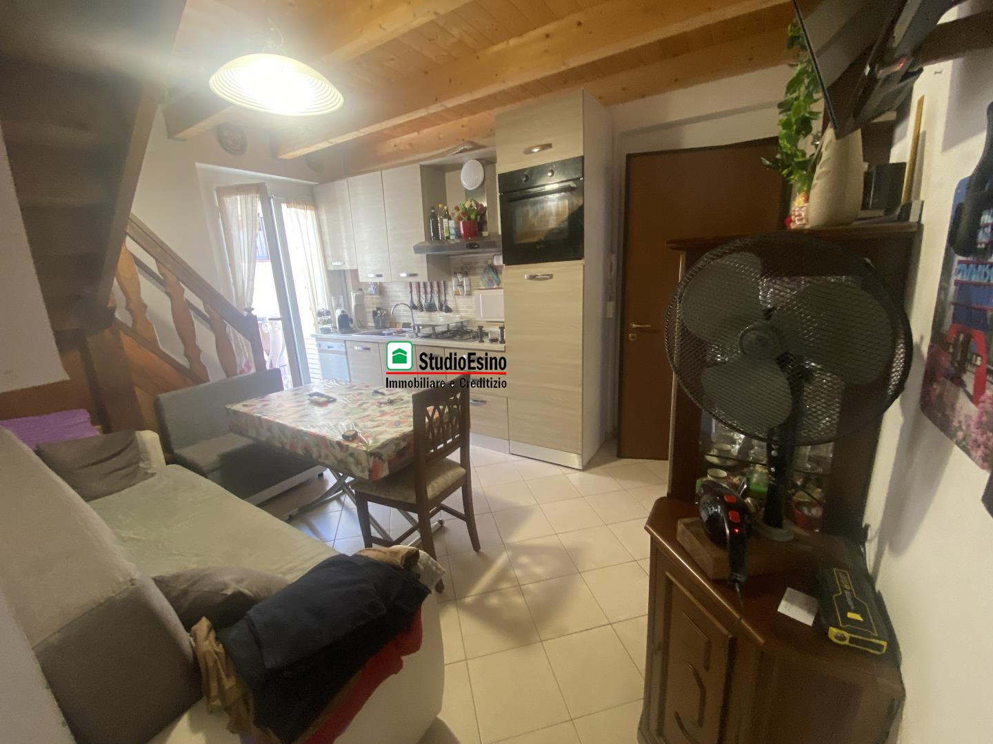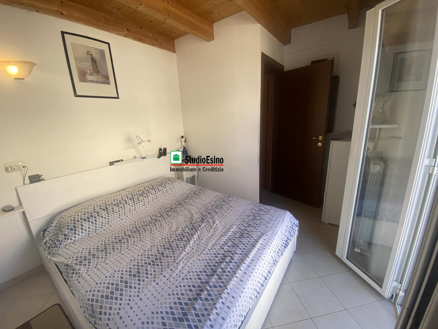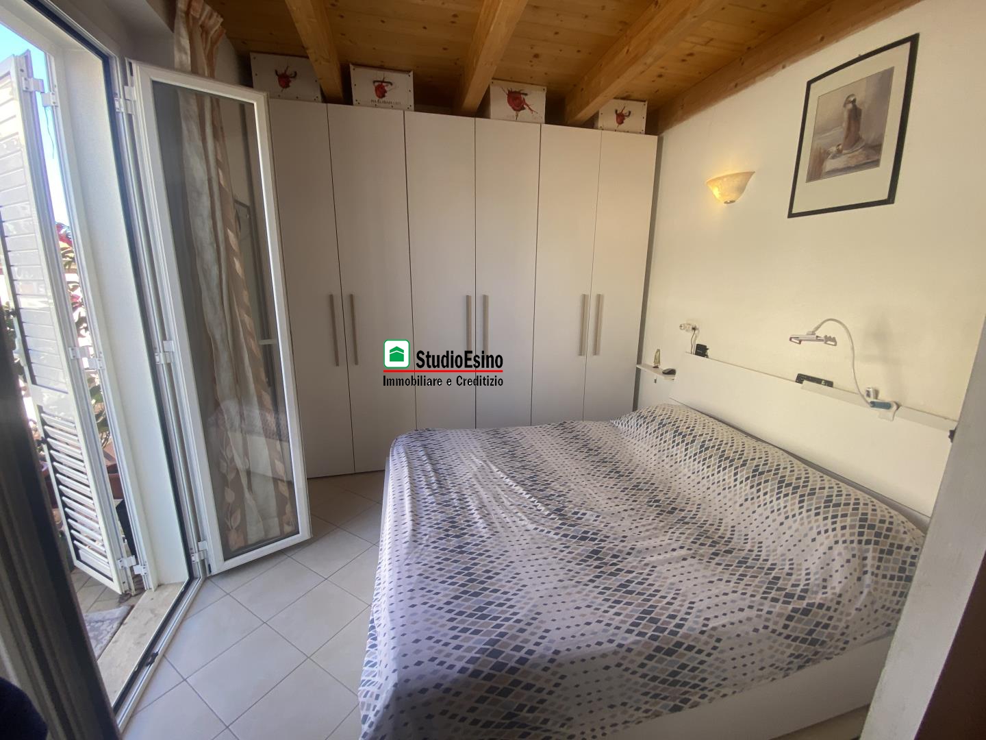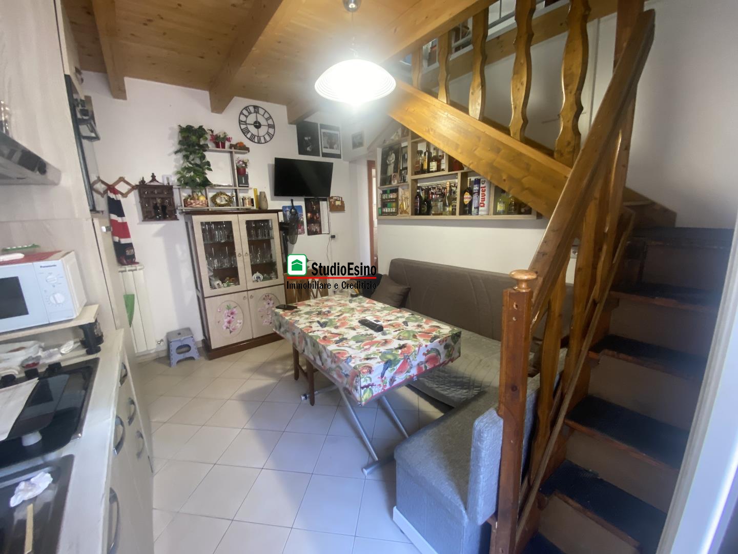 L'appartamento si presenta in ottime condizioni così composto: ingresso su soggiorno/cucina, camera matrimoniale, bagno con box doccia e finestra, due balconi, la soffitta è accessibile tramite scala in legno interna con pavimento in piano e finestra.
