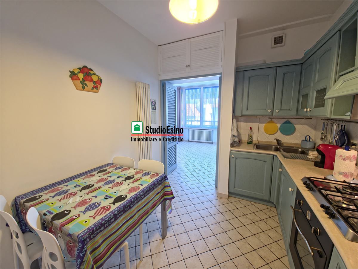 cucina abitabile separata, camera da letto matrimoniale, cameretta, bagno con box doccia e finestra.
