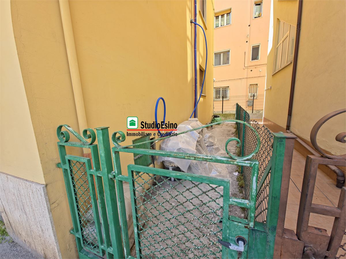 Accesso a una corte recintata condominiale con posto riservato per bici e moto.