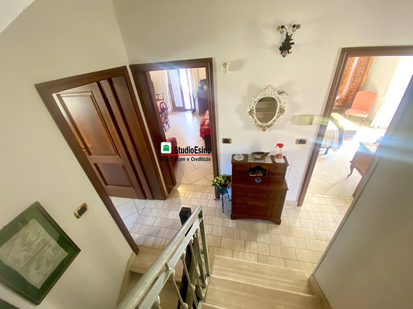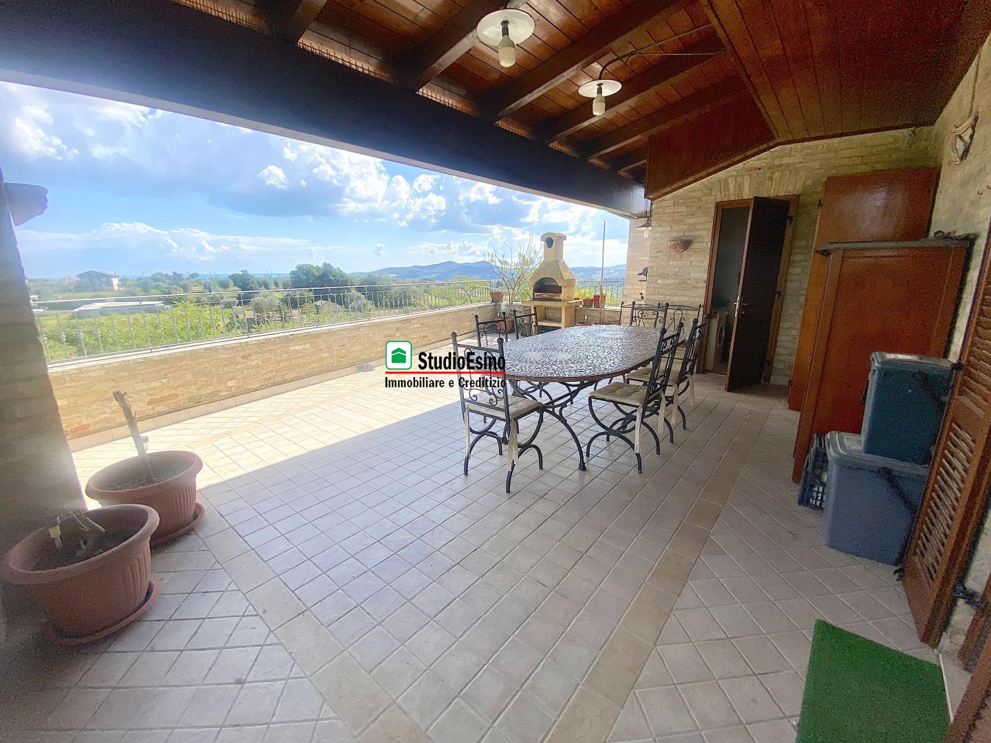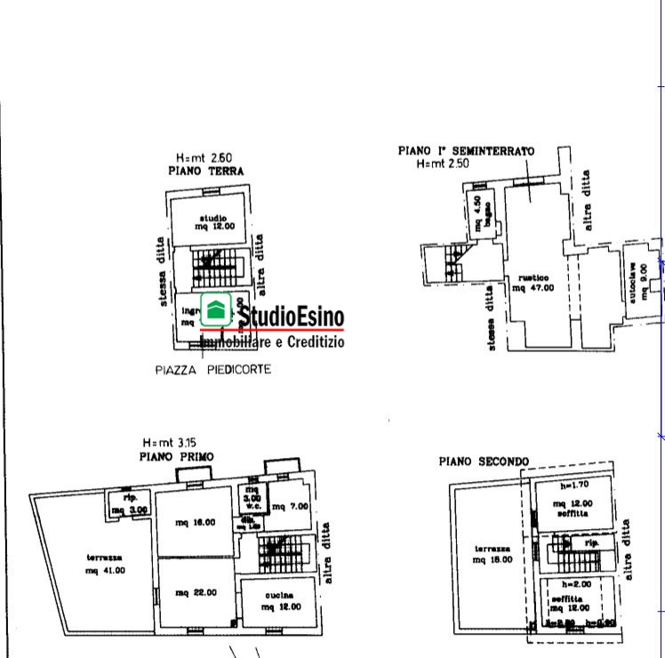al piano terra troviamo l'ingresso, lo studio, ed un ripostiglio; al piano sottostante abbiamo un ampio rustico con zona pranzo, cucina in muratura, dispensa, zona living con camino, salotto e bagno; al piano primo abbiamo una cucina abitabile, sala, terrazzo panoramico di mq. 41 con annesso ripostiglio, camera matrimoniale, bagno, cameretta, e balcone; al piano secondo ci sono due camere matrimoniali con bagno ed ulteriore terrazzo di mq. 18.